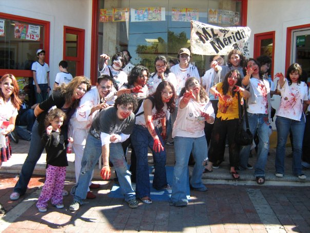 Con esta idea en mente aquí en nuestra ciudad de Mérida se reunieron por vez primera más de 45 personas entre zombies y fotógrafos que apoyaron marchando caracterizados o que estuvieron acompañándonos desde la acera, trayendo víveres para la causa de este año: Apoyo material a Haiti.